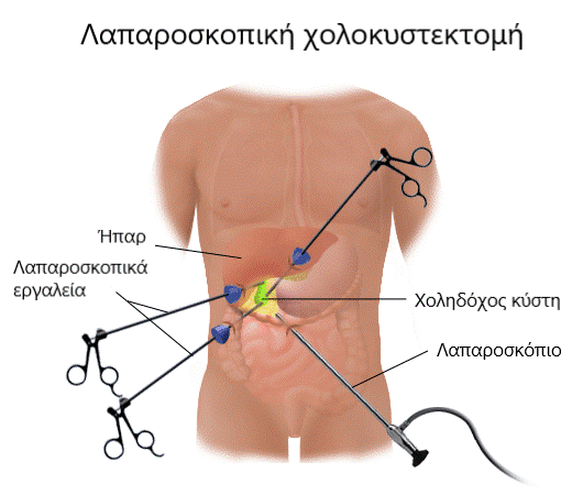 Σχεδόν όλες οι χολοκυστεκτομές σήμερα πραγματοποιούνται λαπαροσκοπικά, δηλαδή από 4 συνήθως μικρές οπές 0,5-1 εκατοστού στο δέρμα, μέσα από τις οποίες εισάγονται ειδικά εργαλεία και από τις οποίες και αφαιρείται η χοληδόχος κύστη. Το χειρουργείο διαρκεί 1-2 ώρες. Σε ένα μικρό ποσοστό η λαπαροσκοπική επέμβαση χρειάζεται να μετατραπεί σε ανοικτή.